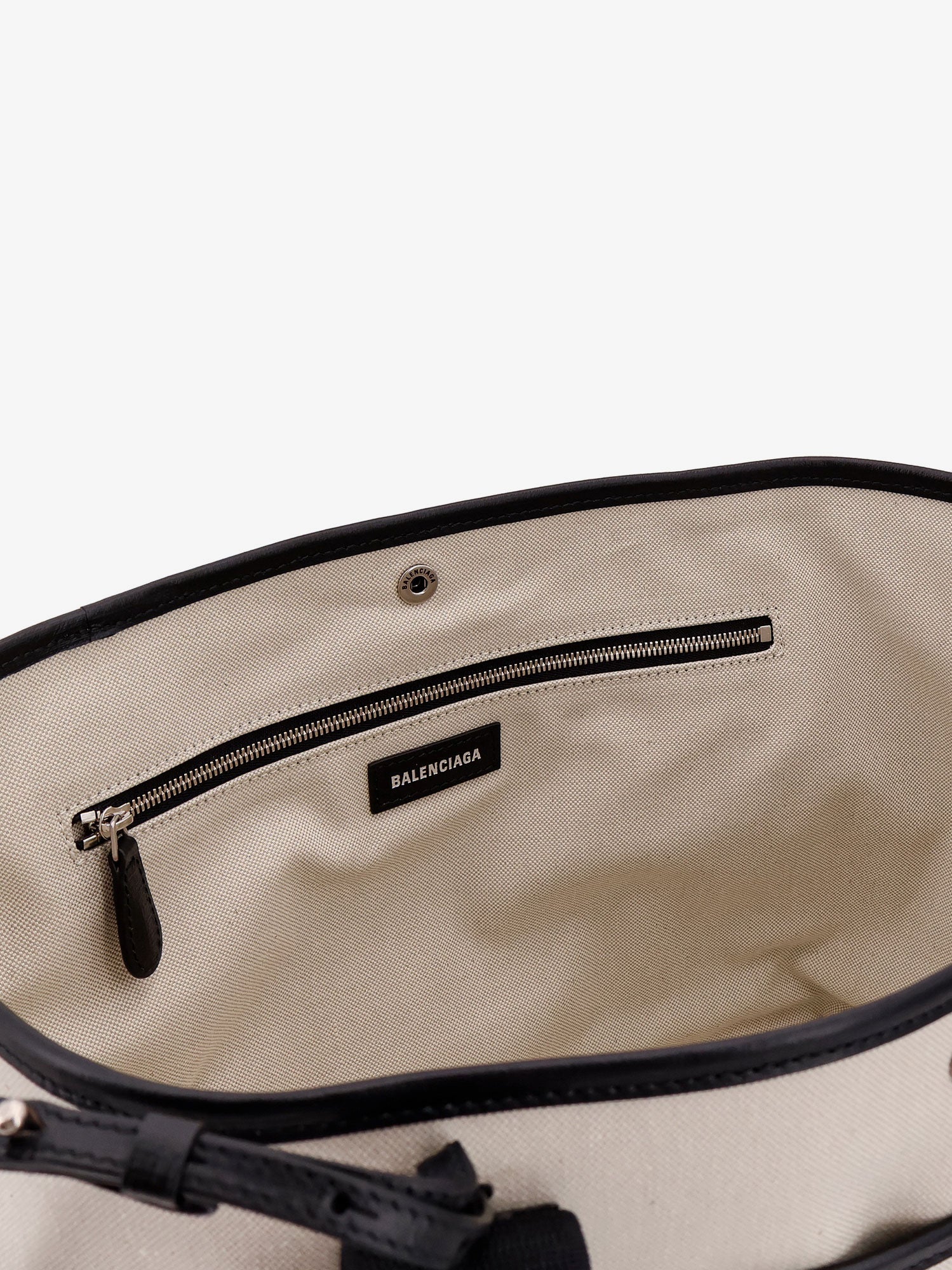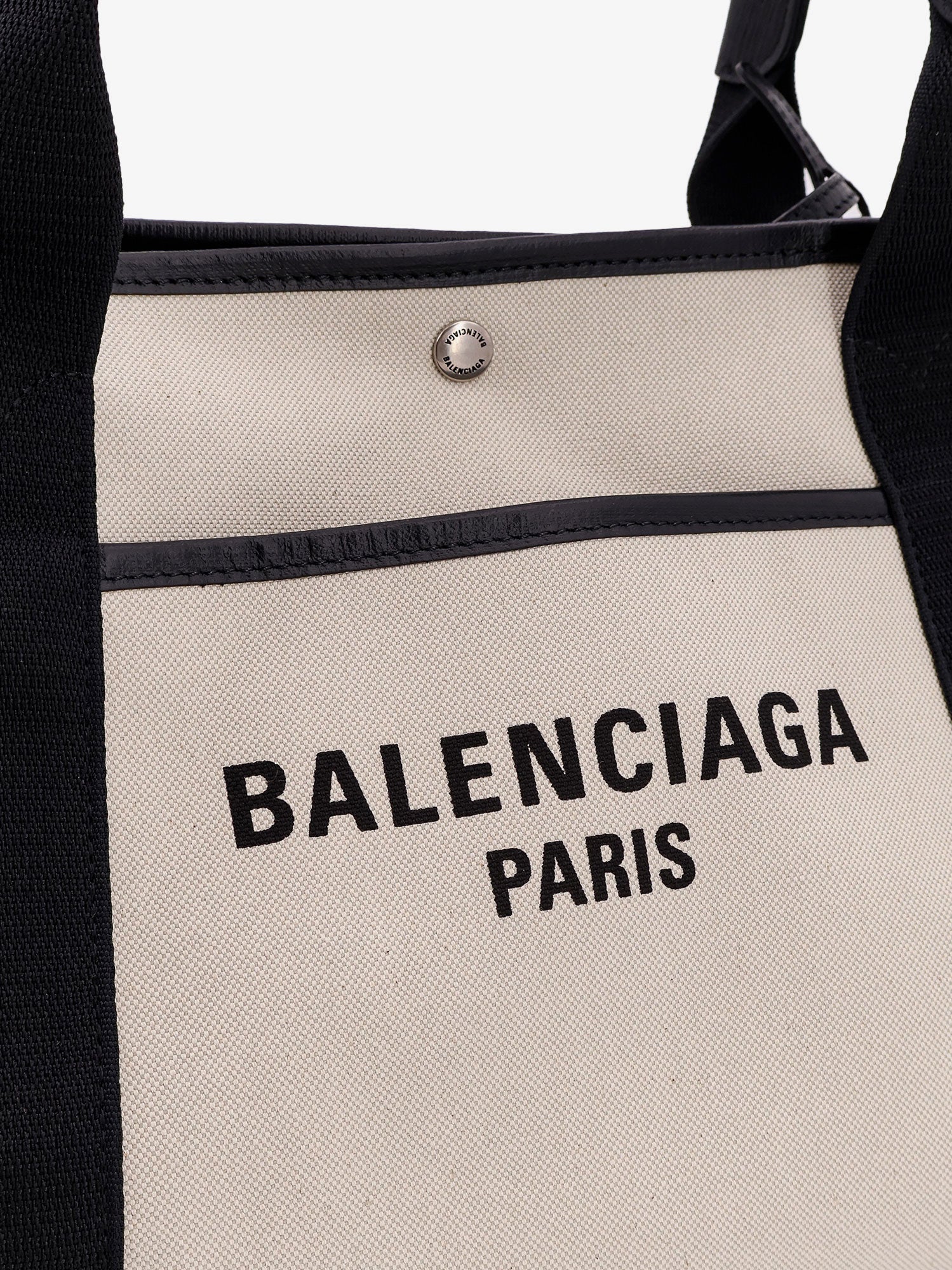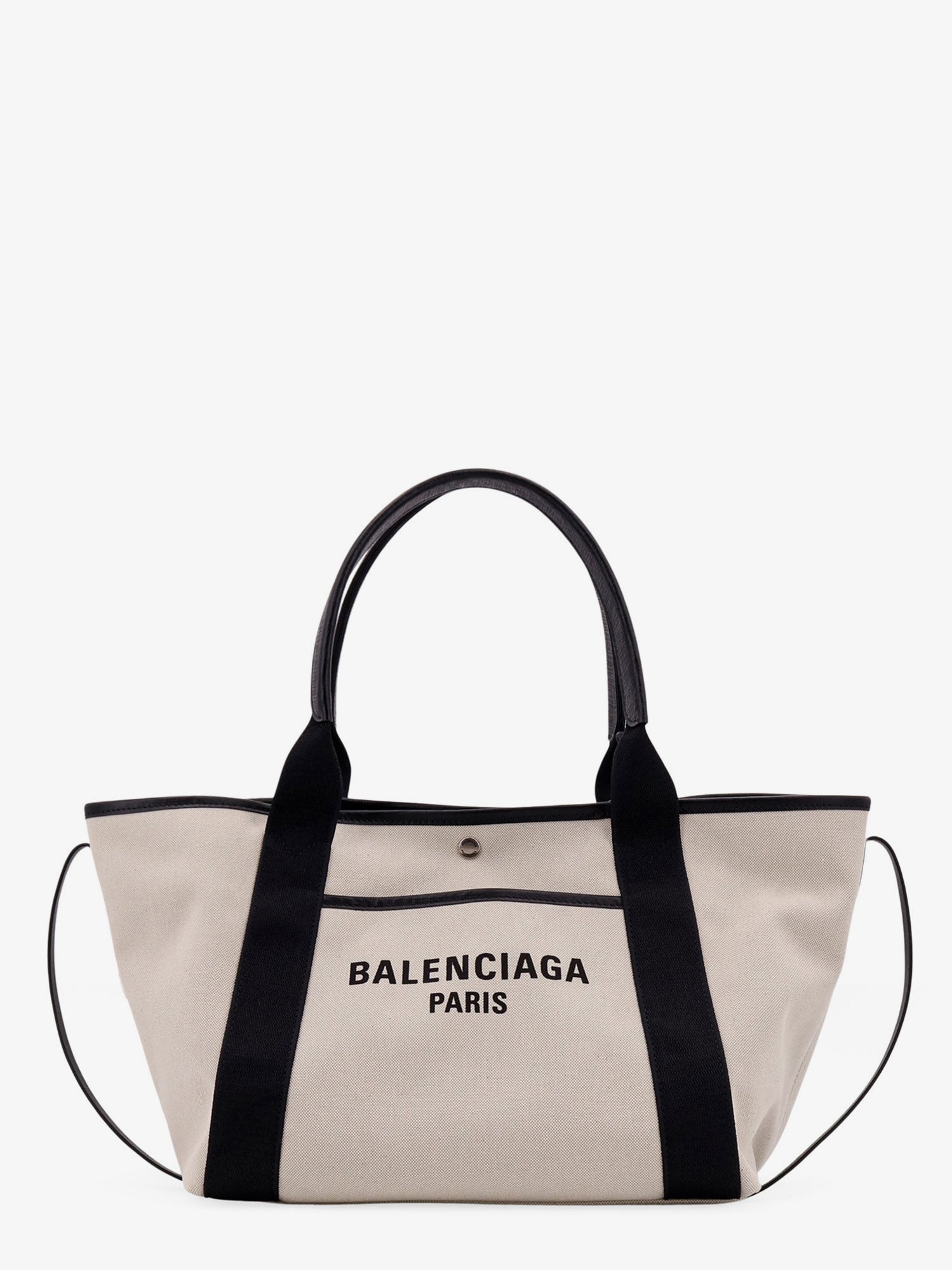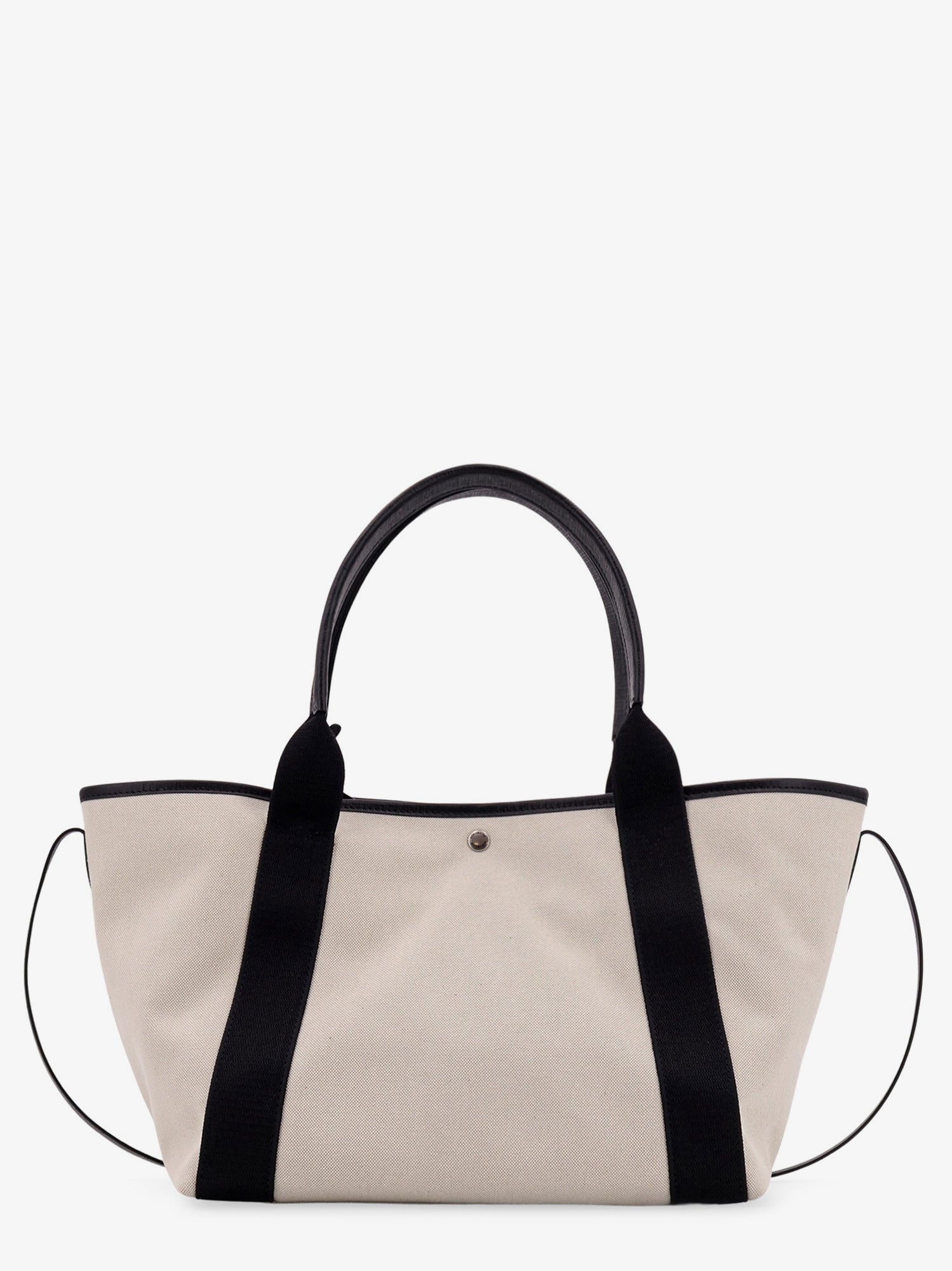 Natural cotton shoulder bag with leather profiles and logo on the front