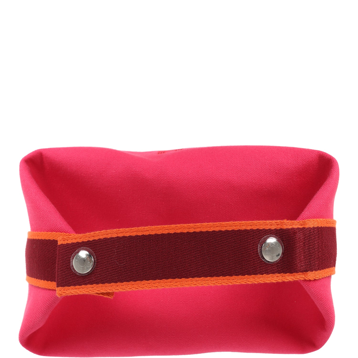 This Bride A Brac Carre Case GM is of Hibiscus Canvas with palladium hardware, features large pouch, anti-stain waterproof lining, embroidered 'H' on the front, tonal stitching, zippered closure, snap closure top handle.