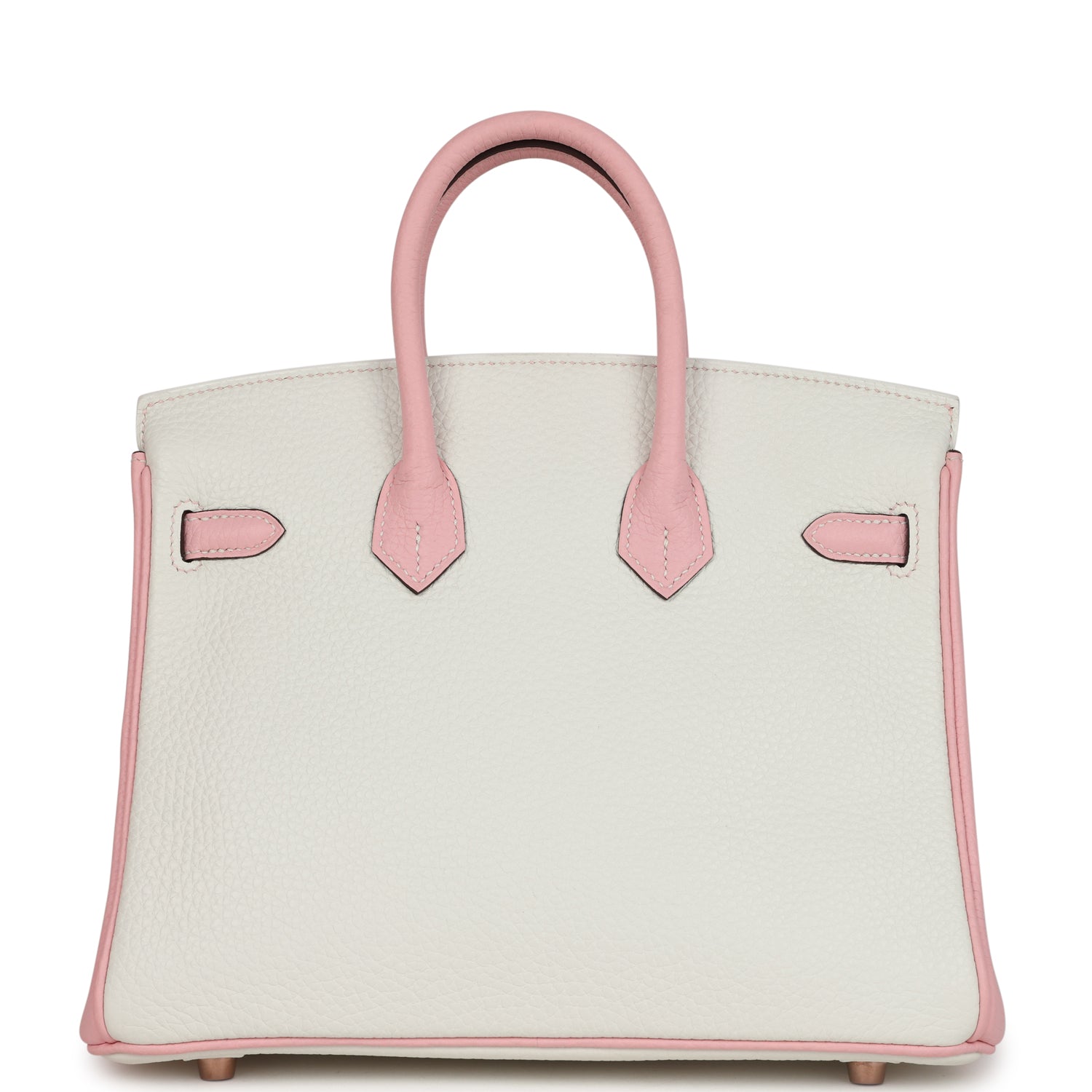 Hermes Special Order (HSS) Birkin 25 White and Rose Sakura Clemence Rose Gold Hardware