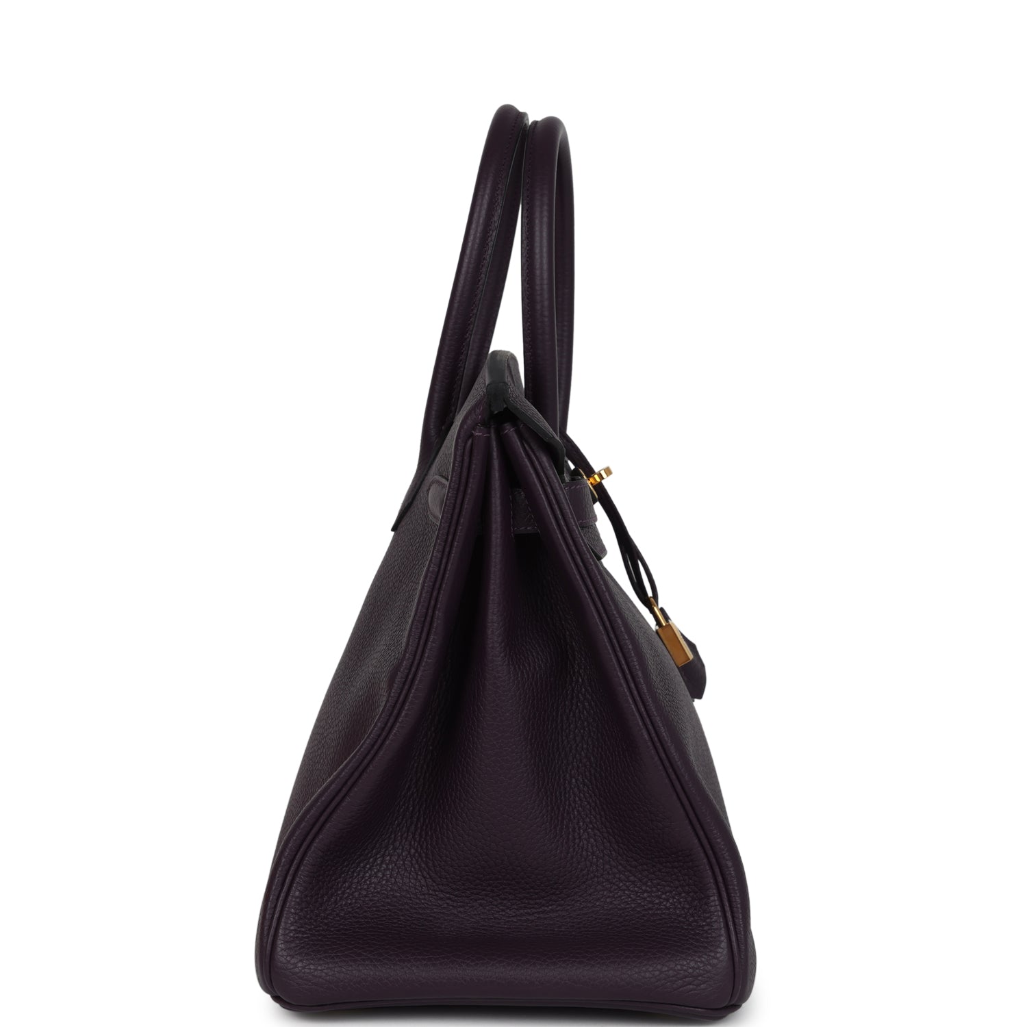 Pre-owned Hermes Birkin 35 Raisin Clemence Gold Hardware