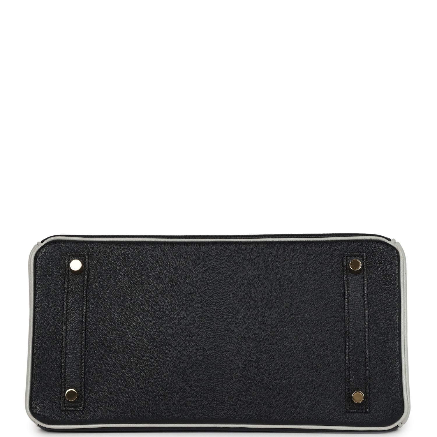 Pre-owned Hermes Special Order (HSS) Birkin 30 Black and Gris Perle Chevre Mysore Brushed Gold Hardware