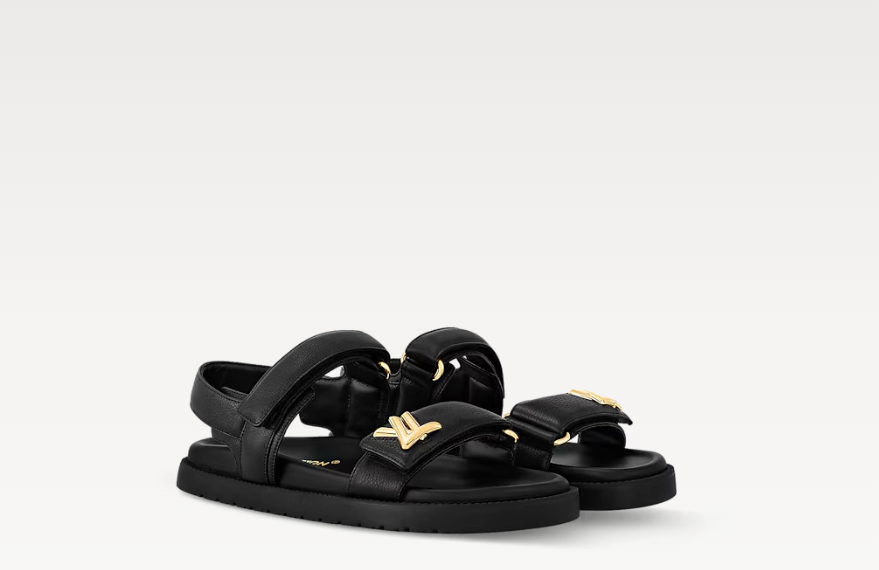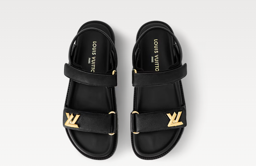 • Il sandalo basso LV Sunset reinterpreta il classico modello comodo con il tocco di stile di Louis Vuitton. La calzatura è realizzata nell'emblematica tela Monogram, con soletta anatomica per il massimo comfort. La creazione si distingue per i pratici cinturini imbottiti con velcro, uno dei quali è impreziosito dalle iniziali della Maison in metallo dorato, che ricordano l'iconica borsa Twist.